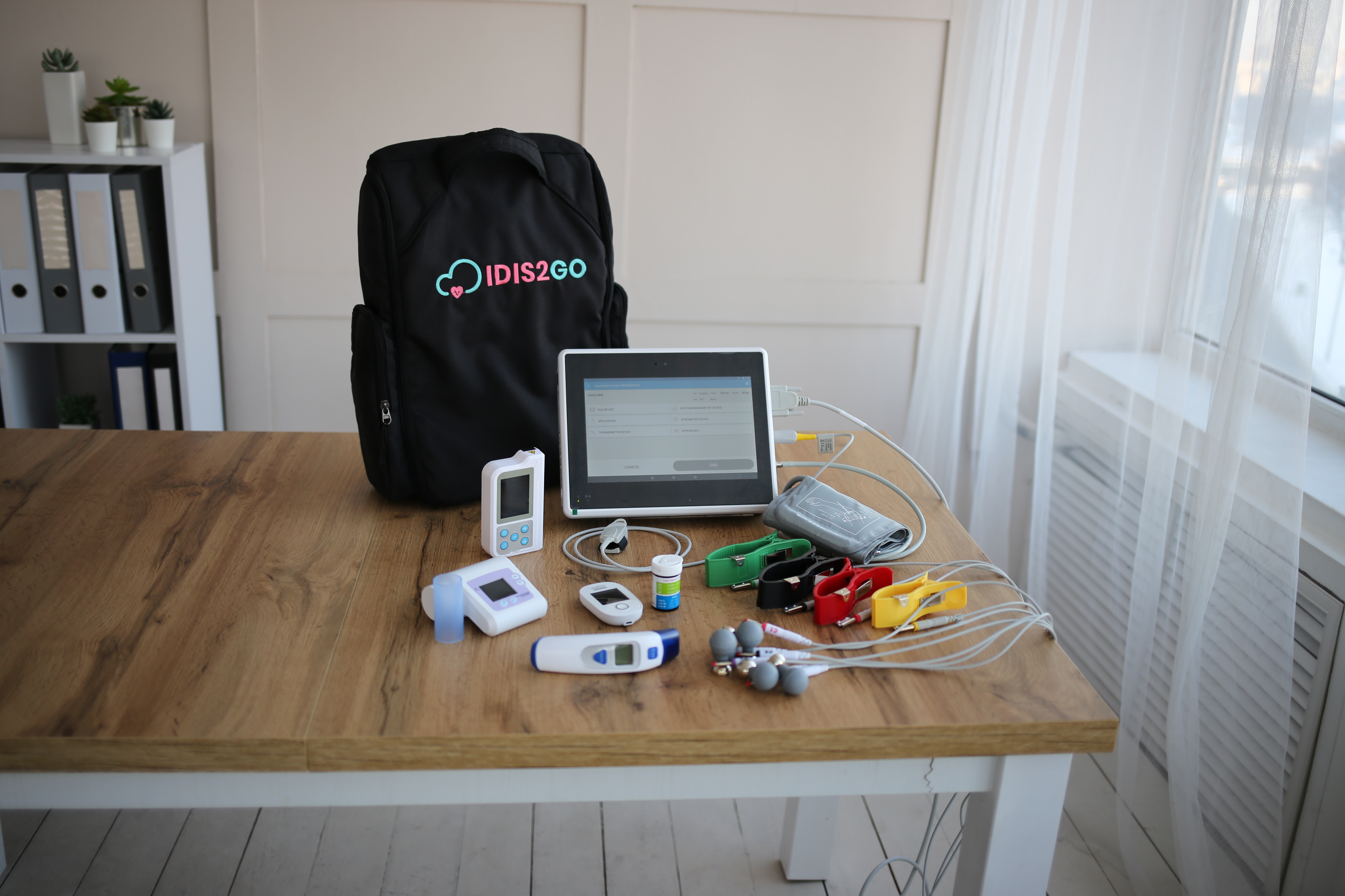 Plataforma de telemedicina com dispositivos médicos conectados, kit portátil de dispositivos médicos e software em nuvem para coleta, transmissão, armazenamento e gerenciamento de informações do paciente.